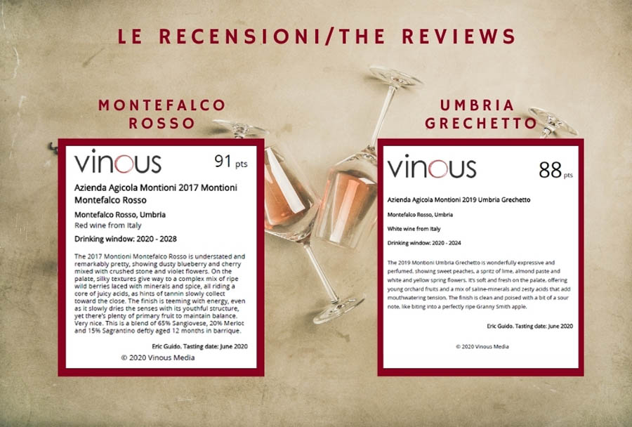 The Italian editor for Vinous Eric Guido, evaluated Montefalco Rosso with a score of 91 and Umbria Grechetto with 88: two fantastic scores for the first tasting of our products by this prestigious wine publication.