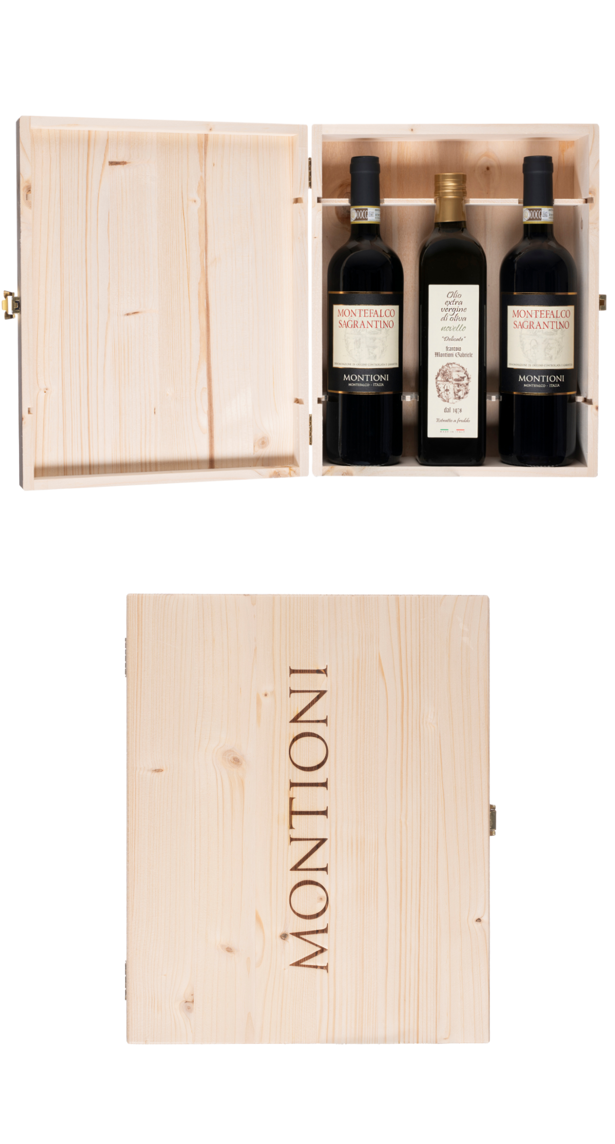 A unique package featuring two bottles of both varieties of cold-pressed Extra Virgin Olive Oil, straight from the Montioni mill, which has been producing them in Montefalco since 1978.
