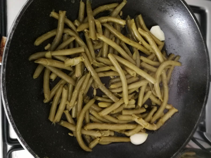 3) Tagliate a metà i fagiolini e fateli lessare in un’altra pentola con acqua bollente per qualche minuto.