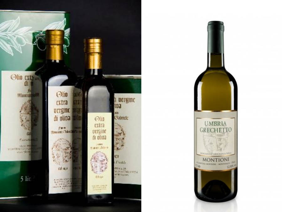 Un olio estratto a freddo, la cui materia prima viene raccolta direttamente dall’uliveto della famiglia Montioni in Umbria.