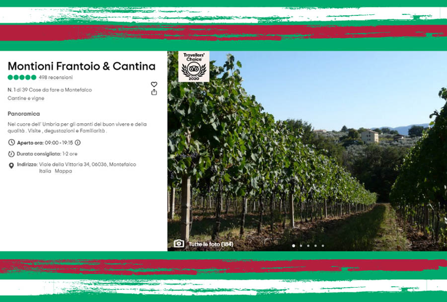 This year, with great satisfaction, our Azienda Agricola appears first among the attractions and activities in Montefalco, specifically among the things to do and see in Montefalco.